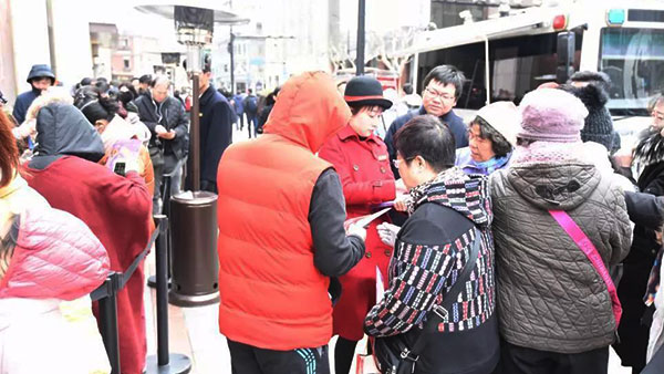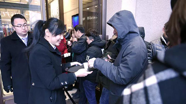 1月26号,早上9点的南京东路已经人头攒动,掀起排队抢“福”狂欢热潮,我们贴心的服务部人员为在寒风中等待的顾客送过去了温暖。