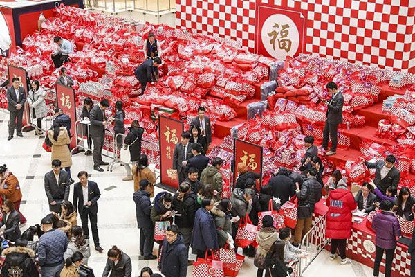 2019年1月26日,新世界大丸百货满载“猪福”迎新春,迎来一年一度的迎新春福袋活动,并于1小时就售空了23款福袋。经过近半年的筹备与计划,近5000份精心包装的福袋成列在一楼中庭,如此大规模的福引来顾客驻足,大家都想抢到一份实惠的福气。