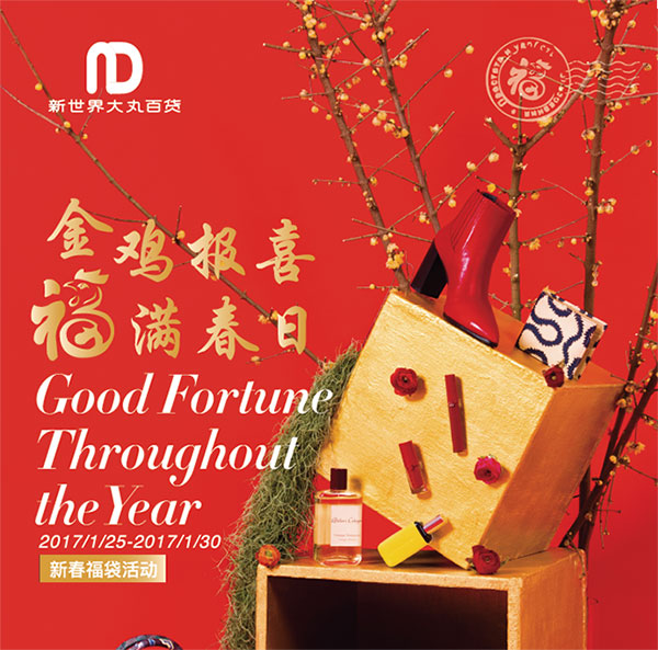 随着福袋文化与中国传统纳福形式的结合,越来越多的消费者会在春节参与不同的抢福袋活动,这种消费方式成为一种新的纳福文化。传统百货行业先驱新世界大丸百货今年更是大手笔联合一众世界知名品牌以及中国黄金,推出“神秘福袋”、“黄金福袋”、“精选福袋”与“会员福袋”四大福袋品类,共计10,000余个,于新春佳节即将到来之际,回馈给所有顾客。