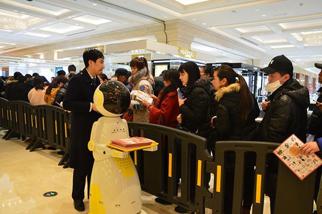 新春佳节来临,零售市场进入今年首个销售小高峰。上海新世界大丸百货启动“金鸡报喜 福满春日”惠客活动喜迎春节,1月25日活动开幕当日发布200个投资金条福袋、百余个会员福袋、千余个神秘福袋、万余个品牌福袋,吸引千人排队抢购。同时为带来更好顾客体验,特“聘请”两位智能机器人加入客服阵营,成为沪上首家走高科技服务路线的传统百货公司。传统跨界高科技,将会是2017年度零售商业行业的新风向。