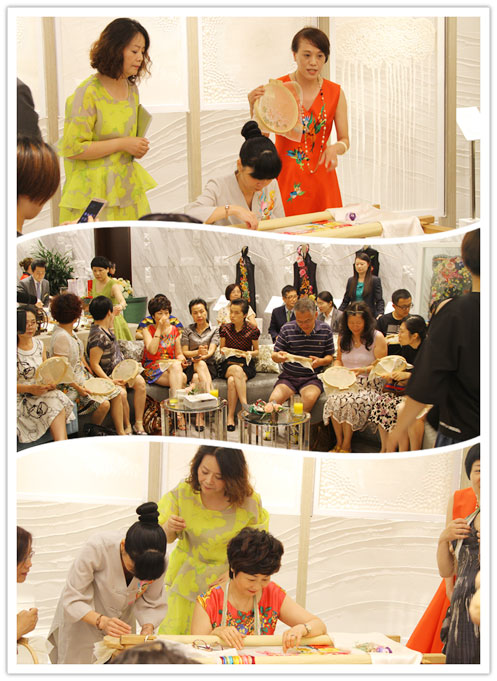 活动开始后,由台绣品牌的工作人员为大家讲解了中国传统刺绣的渊源和简要知识。同时,共同观摩了手工艺人现场刺绣的过程。随后,穿着刺绣服饰的模特为现场观众进行动态展示,更好地诠释了刺绣赋予中国传统服饰的美感。接下来的环节就是大家最期待的手工DIY刺绣了。工作人员为现场的会员准备了刺绣所需的各种工具,会员们在专业刺绣艺人的讲解和指导下亲自尝试在丝绢上刺下图案。虽然手法生疏,但大家被刺绣文化的魅力所吸引,参与的热情都很高。大家围在专业刺绣艺人的身边,认真观看她绣出的图样并向她请教。本次活动获得了参与会员们的高度认可,在大家对刺绣艺术的流连忘返中圆满结束。