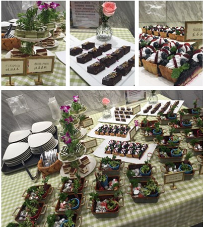 花到家不仅为商场高端会员们免费提供活动所需要的各种插花工具和鲜花,还精心准备了多种茶歇甜品,精致的摆盘与花草搭配,突出了当天的活动主题。