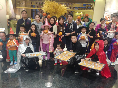 孩子们发挥各自的创意,在南瓜上绘画创作,家长们则在一旁协助孩子雕刻出他们心中的南瓜灯。做完南瓜灯,孩子们在现场老师的指导下用各种形状的模具制作各种各样的南瓜小饼干。饼干烘烤成型后,玩得尽兴的孩子们带着自己的小作品满意而归。