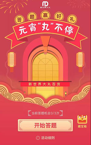 喜迎元宵,欢乐闹佳节。2月16日至2月17日,新世界大丸百货在会员微信端举办了答题赢好礼活动,与广大会员共同分享元宵的喜悦。 此次活动为期2天,奖品精美丰厚,包含2019元现金券,欧舒丹套装、小猪公仔、各式餐饮券和会员积分等。活动甫一开始,会员们就纷纷前往活动链接,脑洞大开地回答每一道趣味提问,并赢得不同的礼品。会员中心的工作人员也有条不紊地进行礼品核销与发放,现场秩序井然,前来领取奖品的会员们脸上都洋溢着喜悦之情,纷纷表示对此类活动的认可,希望今后能开展更多丰富多采的活动。
