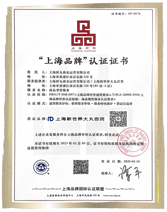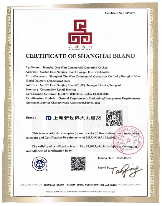 “上海品牌”认证证书