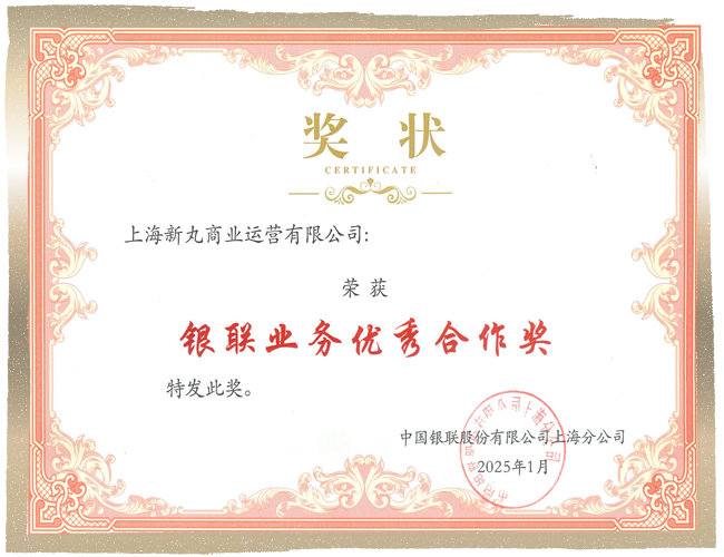 银联业务优秀合作奖